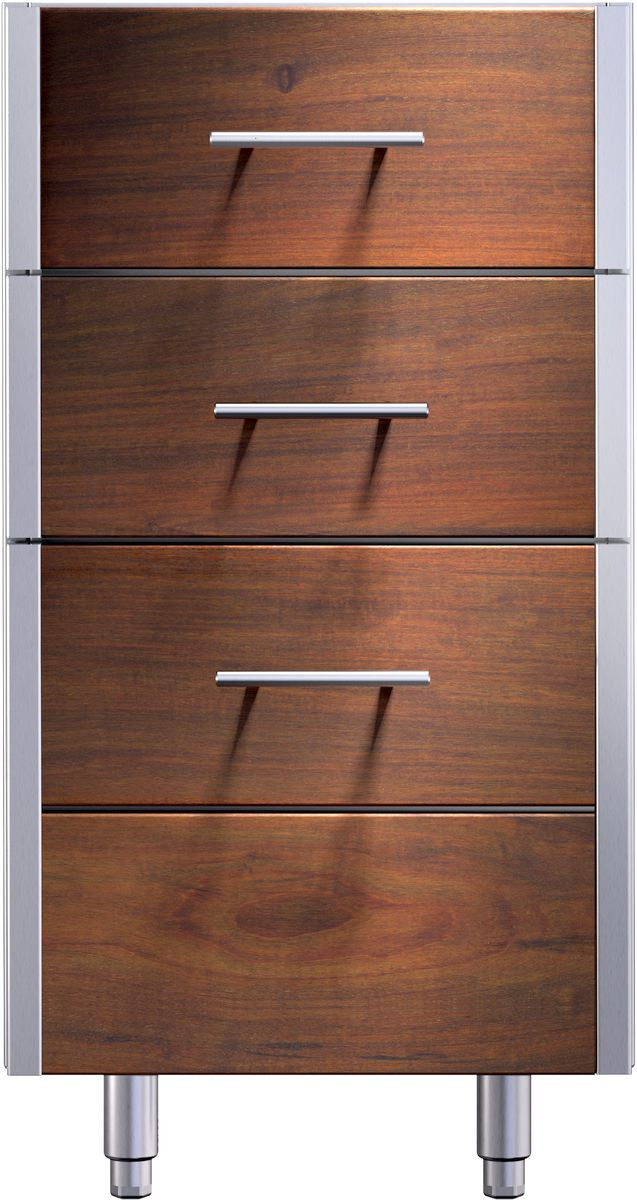 Tailor your outdoor kitchen to your individual style and surroundings with the Arcadia Series. This 18-inch Arcadia Storage Cabinet features an extra-large bottom drawer, and is available in a rich oiled ipe wood or powder-coated stainless steel.Read More