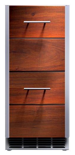 Arcadia Series: 15-inch wide, outdoor-rated, undercounter refrigerator, with two drawers. Drawers slide out on stainless steel ball bearings and glides. Oiled Ipe wood overlay drawers. Marine-grade stainless steel. Appliance cabinets and back panels available.Read More