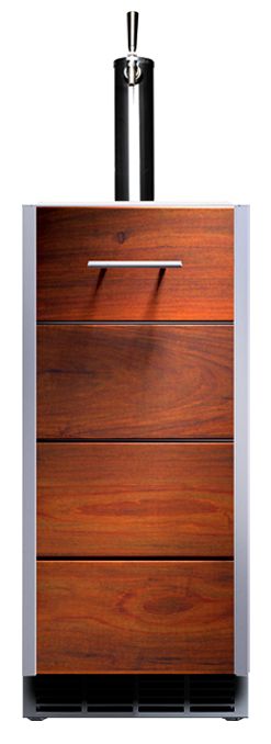 Arcadia Series: 15-inch wide, outdoor-rated, undercounter refrigerated keg tapper with single door (left-hinged). One-faucet tap. Oiled Ipe wood overlay door. 304 stainless steel. Appliance cabinets and back panels available.Read More