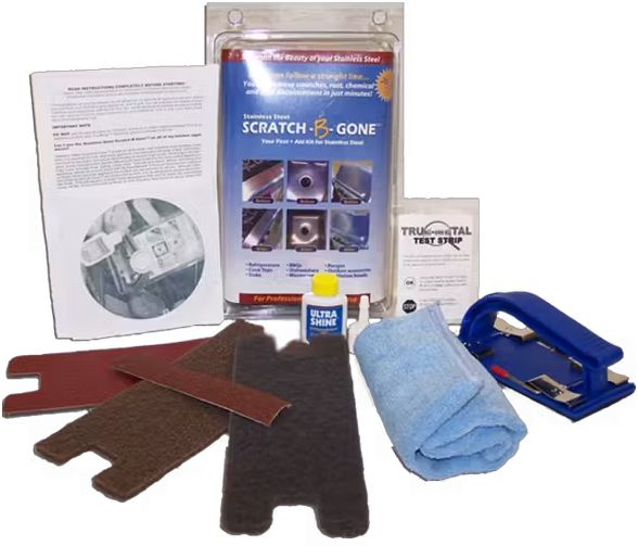 The video CD in every kit shows you just how easy it is to expertly remove scratches, no matter how deep. Warning: DO NOT attempt to use the Scratch-B-Gone tools on polished stainless steel surfaces. This tool is intended for resurfacing of brushed 'real' stainless steel surfaces only. Read and review thoroughly the materials that come with your Scratch-B-Gone purchase before beginning.