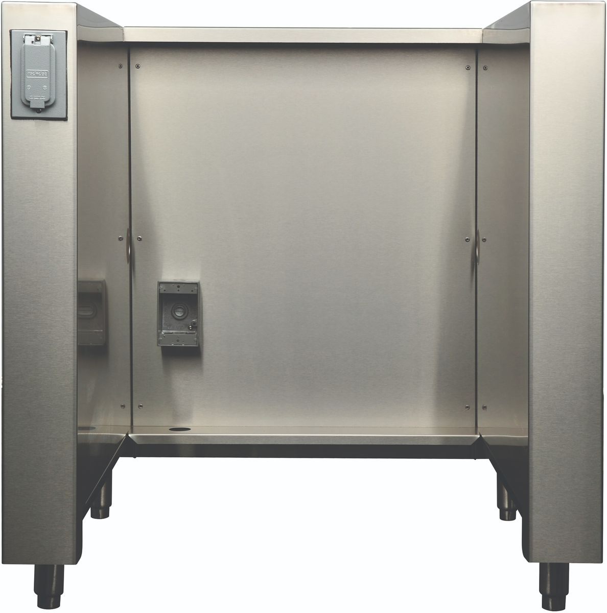 Outlet box on left or right face for countertop electrics
