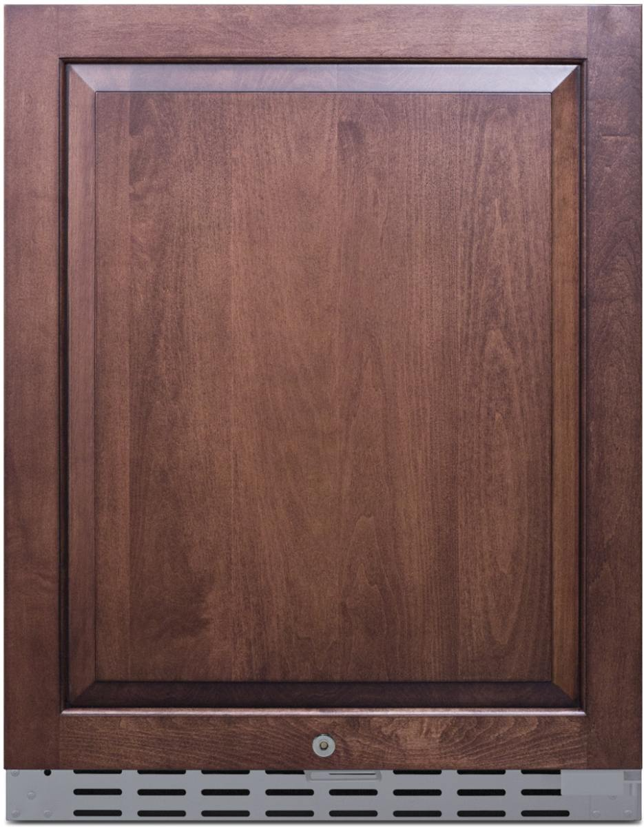 The AL55OSCSSIF is a 24" wide outdoor refrigerator that meets residential and commercial standards and is ETL-S listed to NSF-7. Its sealed rear and complete stainless steel exterior offer true luxury designed to last outdoors. The front-breathing system allows built-in installation under lower ADA compliant counters, while the fully finished cabinet allows freestanding use. The door features an integrated stainless steel frame designed to accept full panel overlays, allowing users to seamlessly blend the unit into their own cabinetry design (panel size: 27 3/4" H x 23 3/16" W; 3/4" thick with a maximum weight of 10 lbs.). The door is factory reversible, and users must supply their own door handle. A factory-installed lock offers security.